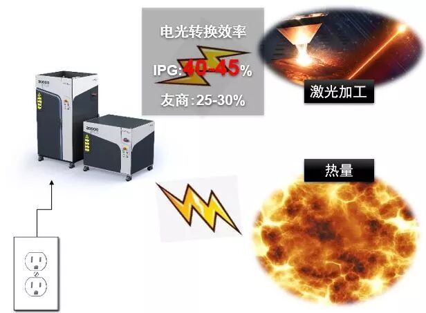 电光转换效率是指将电力转换为激光功率的能量转换效率。电光转换效率不高带来的不利影响有长期的高负荷使用导致费用高,水冷机的占地面积大,耗电量大,制冷机多,设备易故障、不利于环保等弊端。