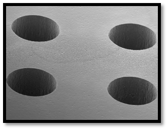 图1:厚度为 635 微米的氧化铝(96%),以300 孔/秒的速度打孔