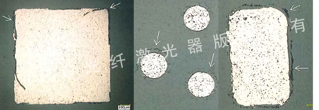 图1 传统激光加工效果:边缘毛刺硬渣,由于汽化不够,后期清洗也无法去除。
