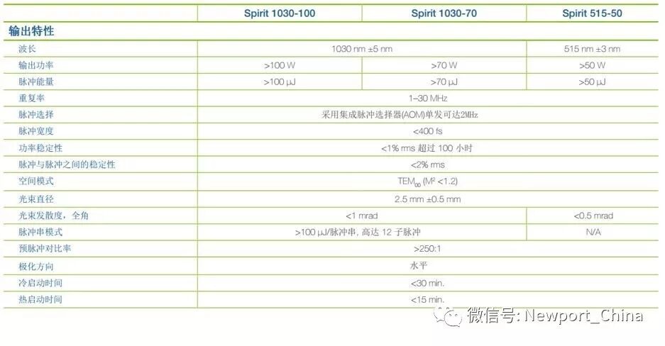 Spectra-Physics 的 Spirit 1030-100 型激光器(图1)输出能量 100 µJ 、平均功率大于 100 W、脉冲持续时间小于 400 fs 的 1030 nm 波长脉冲,并带有脉冲串模式操作功能。