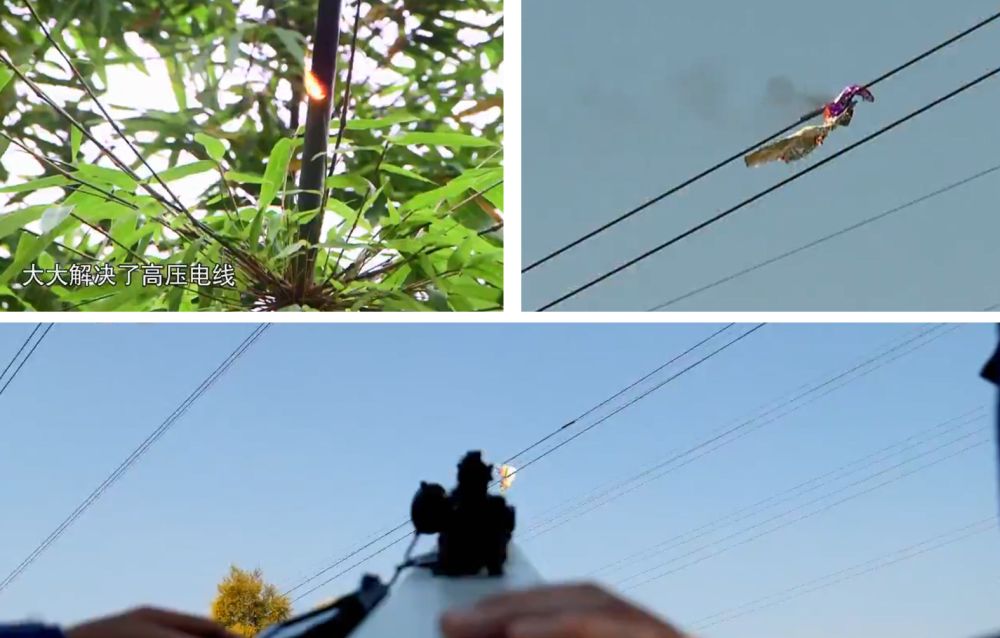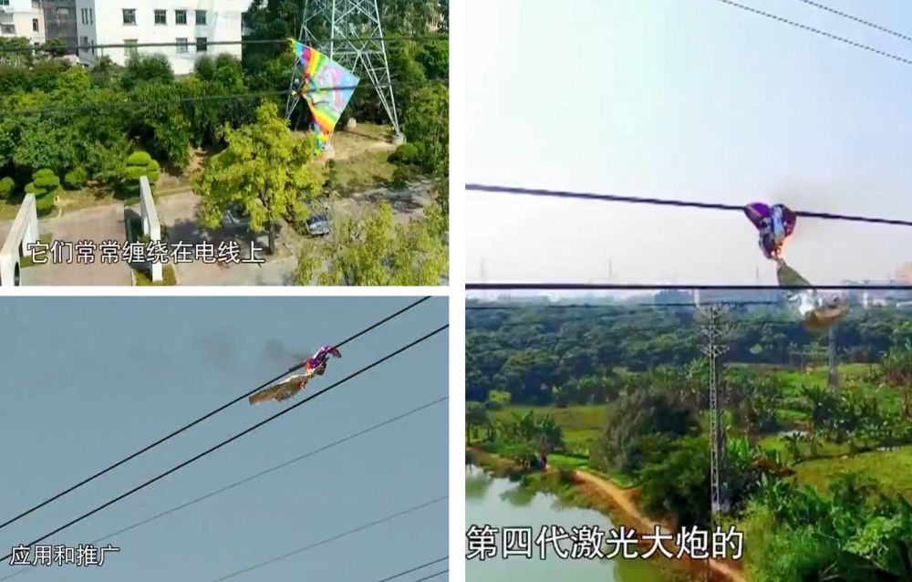 类似的,电线上缠绕的杂物,也会被瞬间烧断、烧毁。跟过去人工清理相比,现在有了激光清障仪,轻敲键盘显示屏,哪里有障碍就烧哪里,再也不用担心电力职工的安全问题啦!