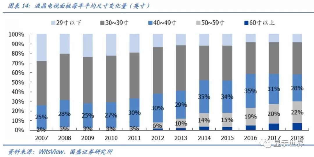 电视消耗八成LCD产能,增长关键变量是电视平均尺寸。面板需求的增长核心在于电视平均尺寸的变化。