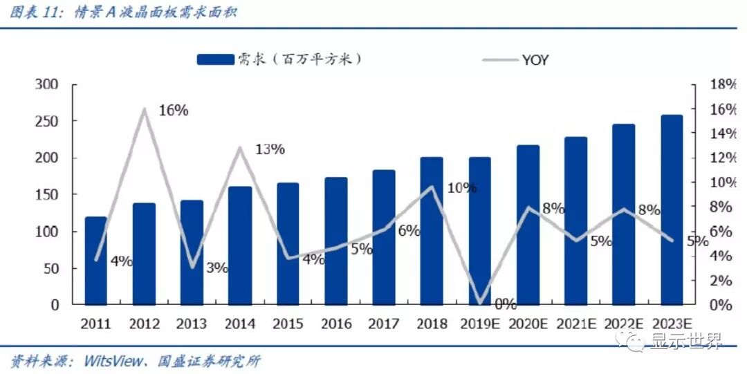需求情景A:线性假设2019~2023年TV平均尺寸每年增加1寸