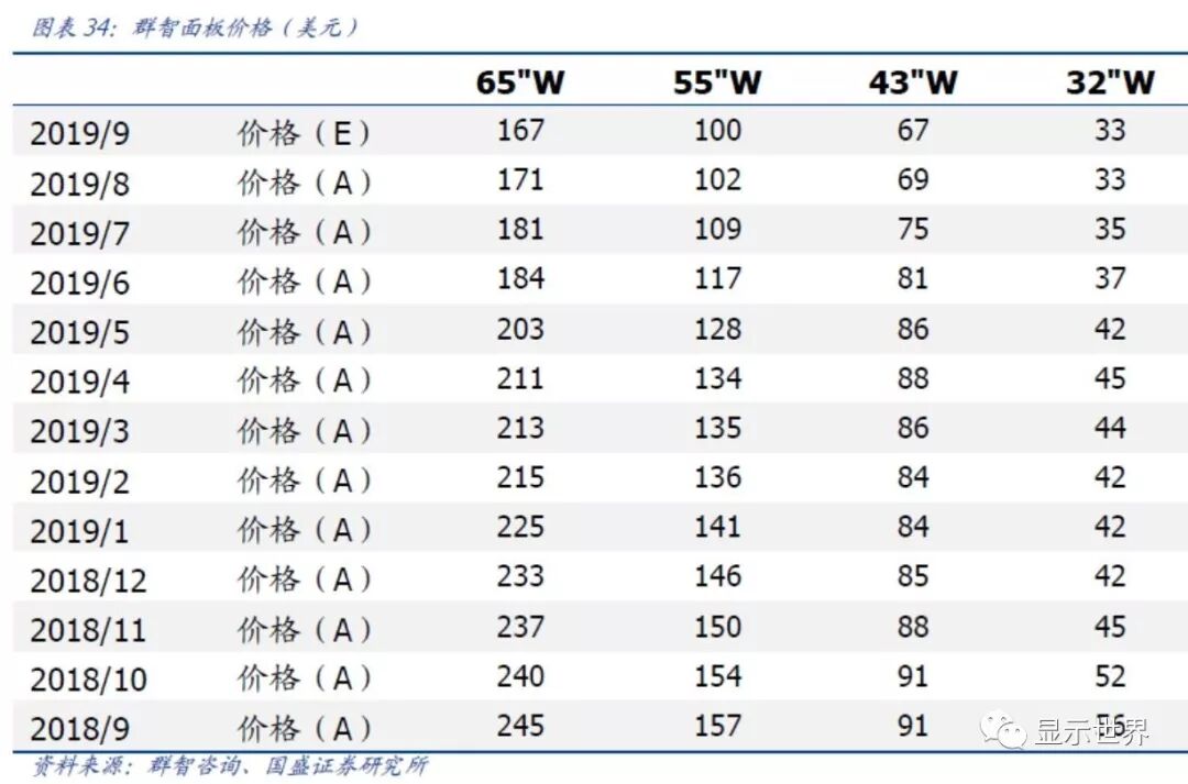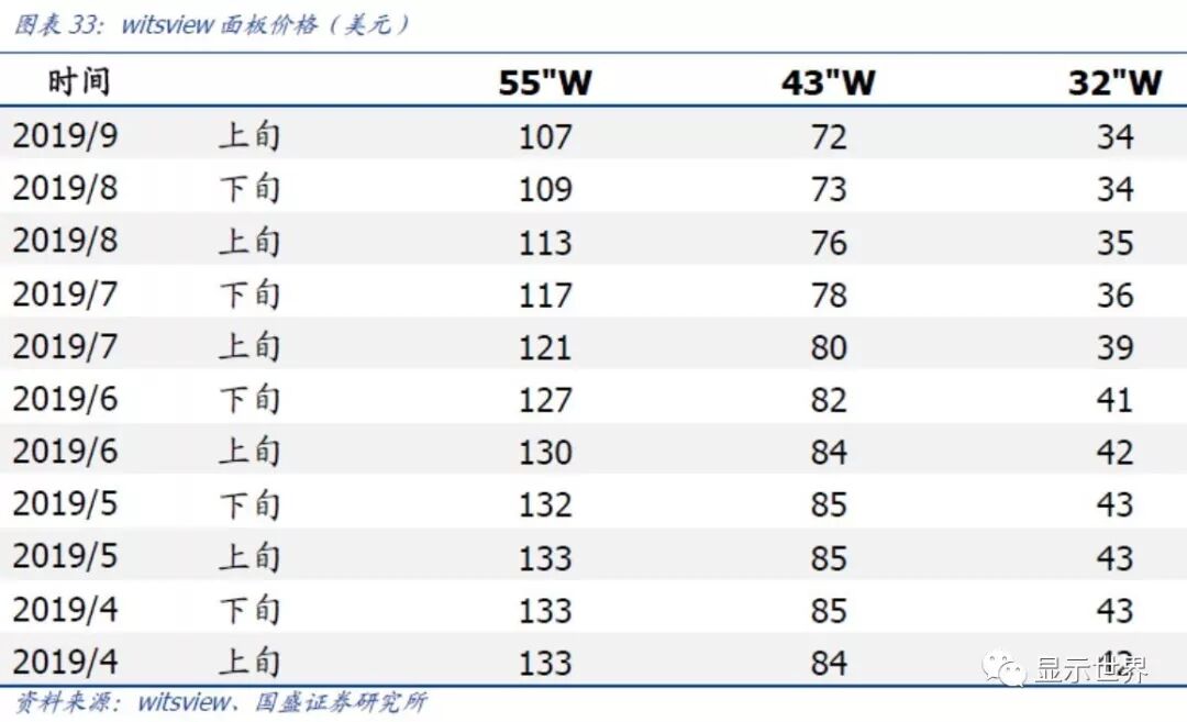 根据群智咨询面板价格数据,32寸面板在9月份报价33美元,同样出现了价格止跌,边际企稳迹象。