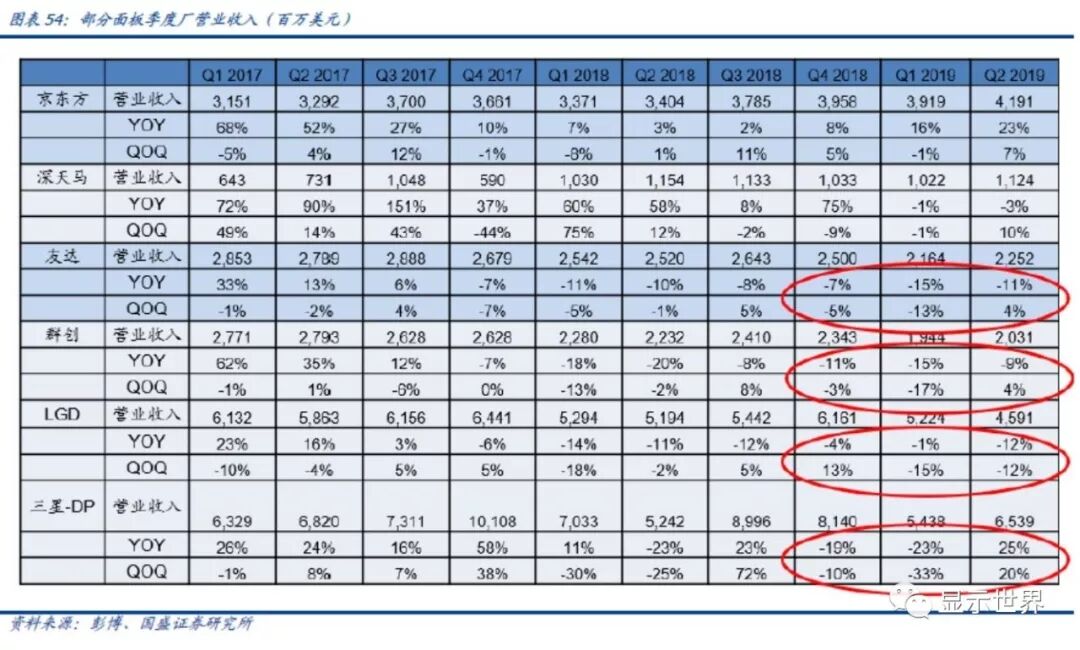 (1)产能退出类:三星(2018年全球LCD面板出货面积市占率15%,下同)、LGD(20%),LCD产能只减不增。其战略中心已由LCD向OLED转移,LCD产能只减不增,其关厂将直接利好产业的供需结构。