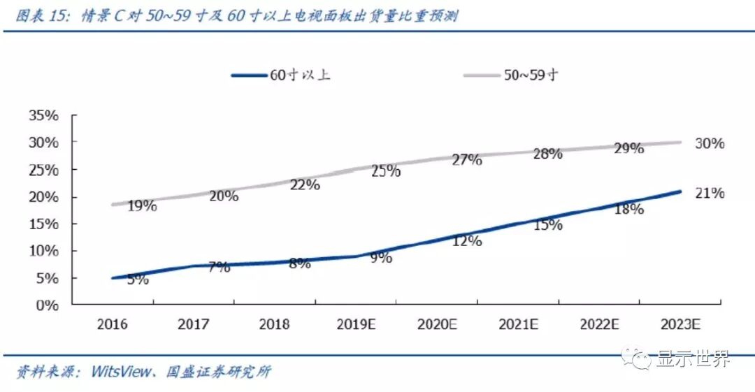 需求情景C:受益于10.5代线及低价格因素,60寸及以上电视面板占比迅速提升
