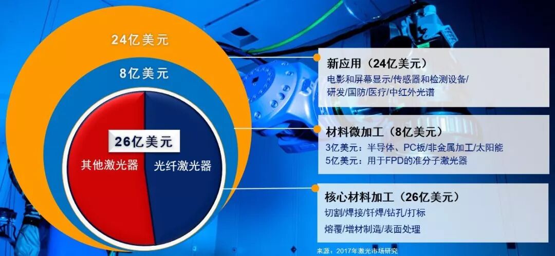 60亿美元的潜在市场,材料加工版块(26亿美元),微加工应用(8亿美元),新兴行业应用(24亿美元)。
