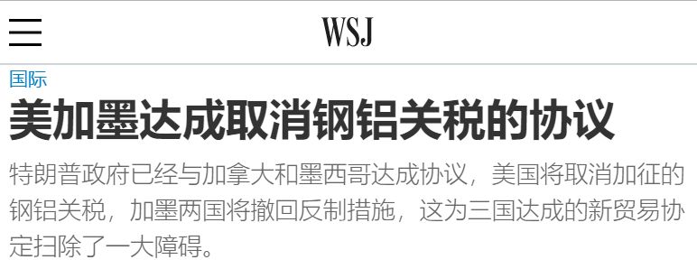 不过,美国针对加、墨的制裁,只持续了一年。特朗普政府已经在今年5月份与加拿大和墨西哥达成协议,双方撤回各自加征的关税。条件当然是以加拿大和墨西哥让步为主,比如采取措施阻止廉价钢铁产品进入加拿大和墨西哥。