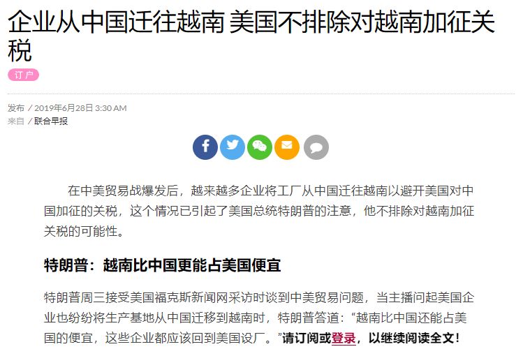 放出威胁不到一周,美国就宣布对越南加征关税。