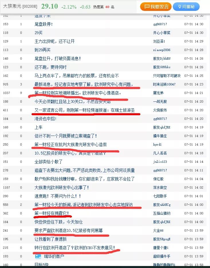 当然,毕竟这只曾经的白马股也曾圈粉无数,不少“踩雷”的投资者并不愿意接受“雷暴”的事实。甚至,有不少投资者认为,经历了较大幅度的连续下跌之后,大族激光利空出尽反而是利好,而欧洲研发中心遭媒体报道所引发的下跌,竟然是“加仓的机会”。