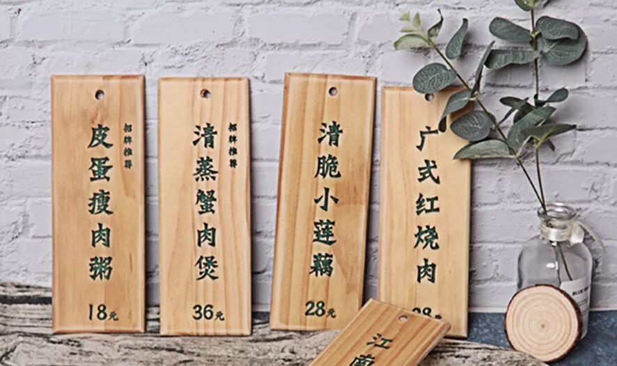 激光雕刻的木质菜牌更经久耐用