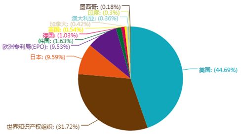 在申请地区布局上,我国石墨烯海外专利集中布局在美国、世界知识产权组织、日本、欧洲专利局,在韩国、德国、英国、加拿大等国也有少量分布,海外专利布局范围还有待扩张。