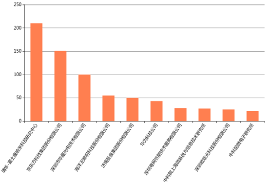 下面对清华-富士康纳米科技研究中心、京东方科技集团股份有限公司、深圳市华星光电技术有限公司、济南圣泉集团股份有限公司、华为科技公司五个重要申请人做重点分析。