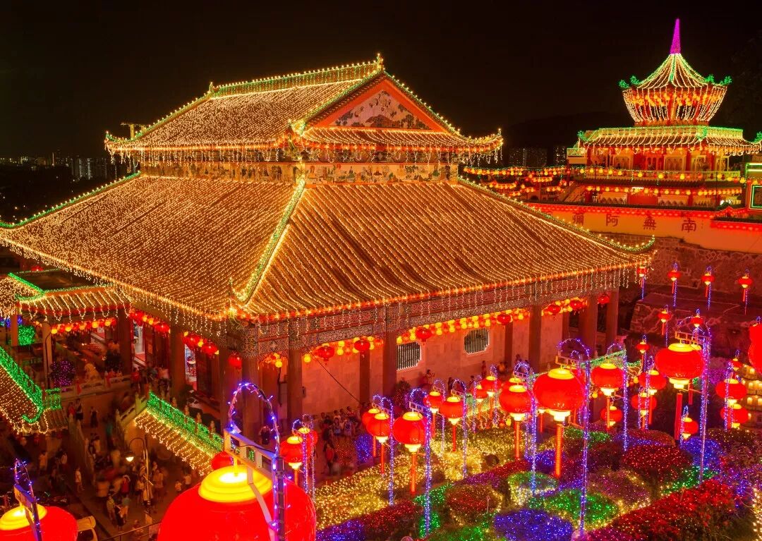 马来西亚的极乐寺每年农历一月份都会亮灯