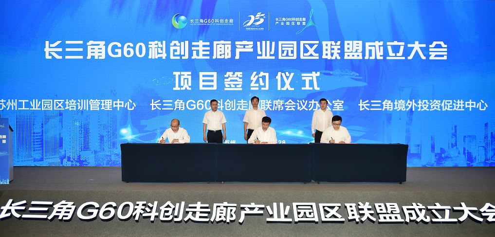 今天,长三角境外投资促进中心、长三角G60科创走廊联系会议办公室、苏州工业园区培训管理中心进行了三方签约。