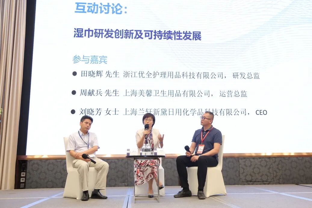 在湿巾市场,产品性能的提升和不断开发的新用途帮助品牌商和生产商提升销量并不断吸引新的用户。那么在湿巾产品的研发和品类创新中,如何贴合市场以及消费者的需求变化,如何平衡产品的性能、便利性和成本等因素,这些都需要我们慎重考虑,此外,对环保的关注也让可持续性成为一项重要话题。针对这些话题,优全护理产品与技术总监田晓辉先生、上海美馨卫生用品运营总监周献兵先生、上海兰轩新黛首席执行官刘晓芳女士展开了热烈讨论。