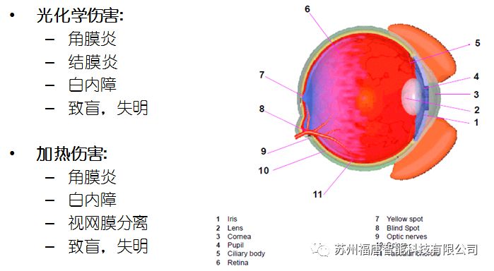 通常来讲,根据危害程度,激光可能的对眼造成如下危害: