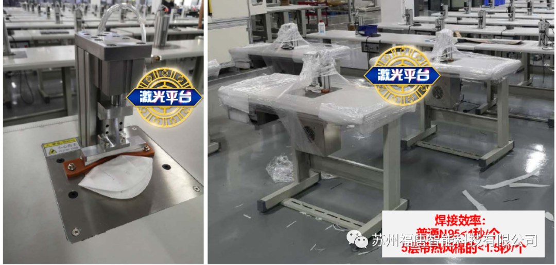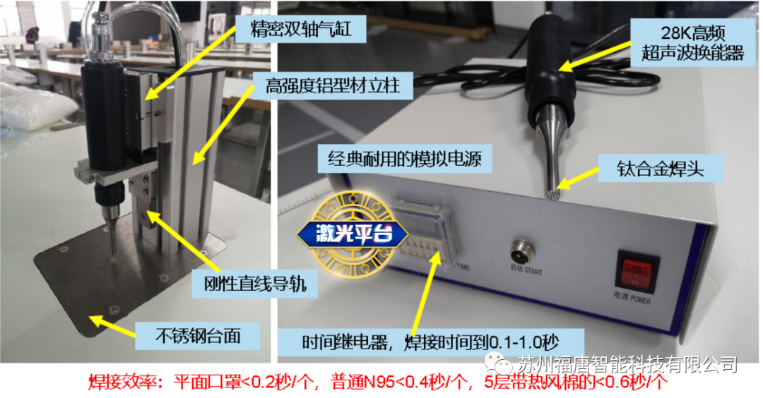 焊接效率:平面口罩<0.2秒/个,普通N95<0.4秒/个,5层带热风棉的<0.6秒/个